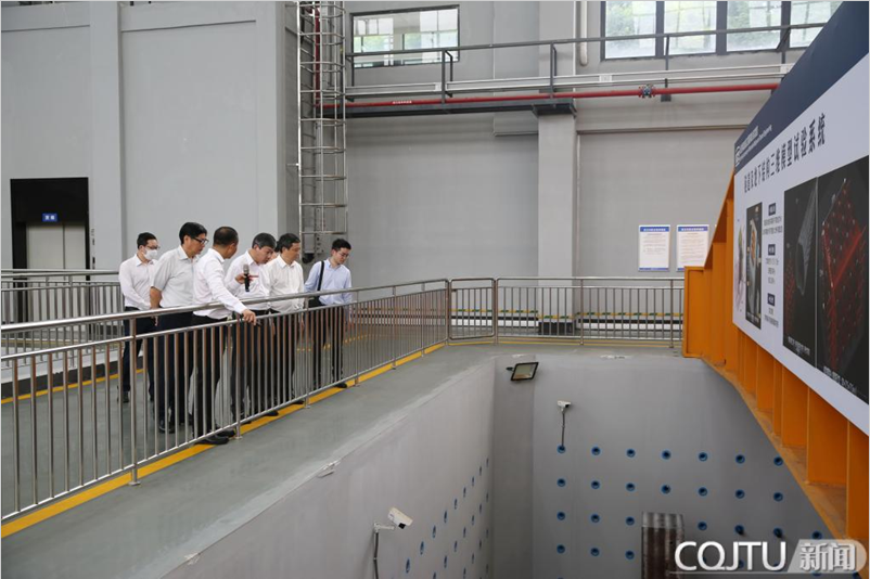 After the opening ceremony, Deputy Mayor Xiong Xue and the accompanying persons, together with the leaders and experts attending the ceremony, visited the National Key Laboratory for Bridge and Tunnel Projects in Mountainous Areas (the Bridge Experiment Building, the Tunnel Experiment Building) and the National Inland Waterway Regulation Engineering Technology Research Center (the Chaotianmen-Fuling River Section 4.5m Water Depth Lifting Project Test Base, the Three Gorges New Waterway Transportation Channel Test Base) to find out more about platforms of the Laboratory and achievements having been made by the University.