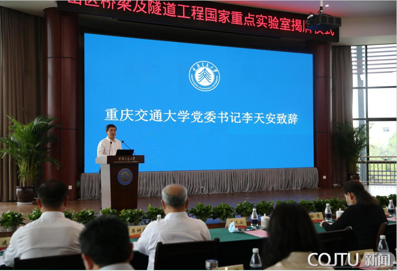 Xiong Xue, Deputy Mayor of Chongqing Municipality and Secretary of Party Working Committee of Chongqing High-Tech Industrial Development Zone, Xu Hongbin, Director of Chongqing Science and Technology Bureau, Li Tian’an, Secretary of the Party Committee of Chongqing Jiaotong University and Tang Boming, President of Chongqing Jiaotong University, jointly hosted the official opening for the National Key Laboratory for Bridge and Tunnel Projects in Mountainous Areas.