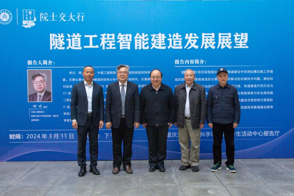 “In the future, we can strive for greater achievements in construction procedures, evaluation systems, system planning, and other aspects to promote the Intelligentization of Tunnel Engineering.” On the afternoon of March 11th, Professor He Chuan, a member of the Party Committee and Vice President of Southwest Jiaotong University, an academician of the Chinese Academy of Engineering, and an alumnus of our university from the class of 1980, was invited to give an lecture at the Science City campus of Chongqing Jiaotong University. Gong Hui, Chairman of the University Board, Vice President Huang Chengfeng, national, Jiang Shuping, China National Exploration Design Master, and Professor Wu Lizhou attended the lecture. Vice President Zhou Jianting presided over the lecture. More than 700 teachers and students listened and gained insights into the Intelligentization of Tunnel Engineering.