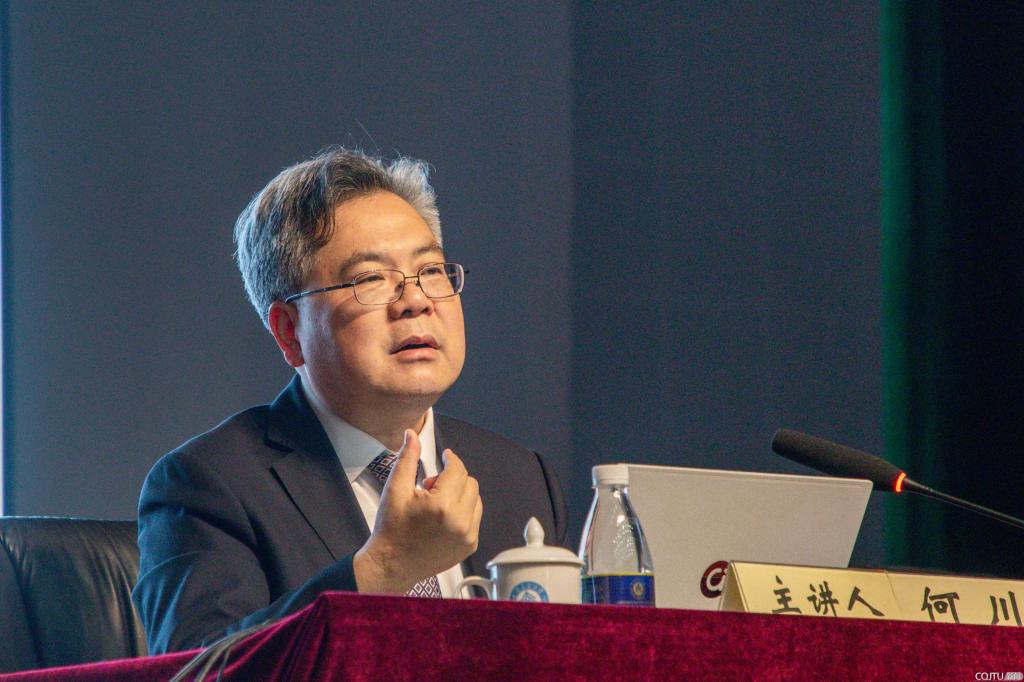 “As a graduate of Chongqing Jiaotong University for nearly 40 years, returning to my alma mater and seeing the young faces, I feel very affable!” At the Student Activity Center, Academician He Chuan affectionately recalled his study experience and the teacher-student relationships at Chongqing Jiaotong University. He sincerely thanked his alma mater for the education and cultivation, and introduced recent developments in publishing monographs, publishing papers, student mentoring, research achievements, awards, research directions, etc.