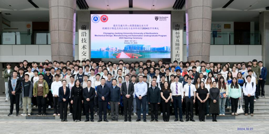On the afternoon of November 21st, 2024, the opening ceremony of co-operation program in bachelor of mechanical design manufacture and automation between Chongqing Jiaotong University, China and University of Northumbria at Newcastle, United Kingdom was held in the Academic Lecture Hall of Zhiyuan Building, Science City Campus. The Northumbria University’s relevant representatives Rob Carthy, Director of the International Development Office, Sunny Sun, Head of China Region, and the Chongqing Jiaotong University’s relevant representatives Mao Mingyong, Director of the International Office, Xu Houzhi, Deputy Director of the International Office, Lin Xingdong, Deputy Secretary of the Party Committee of the School of Mechanical, Electrical, and Vehicle Engineering, He Zeyin, Vice Dean of the School of Mechanical, Electrical, and Vehicle Engineering and more than 200 teachers and students of the program attended the Opening Ceremony.