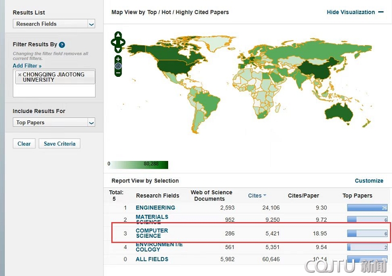 The latest ESI data reveals that in this issue, the university’s Computer Science discipline published a total of 286 papers, which were cited 5,421 times, including six Top Papers. Among the 835 institutions in the top 1% of this discipline, Chongqing Jiaotong University ranks 825th.