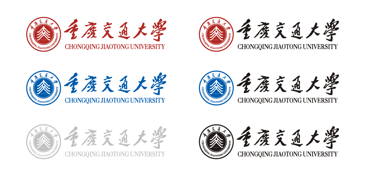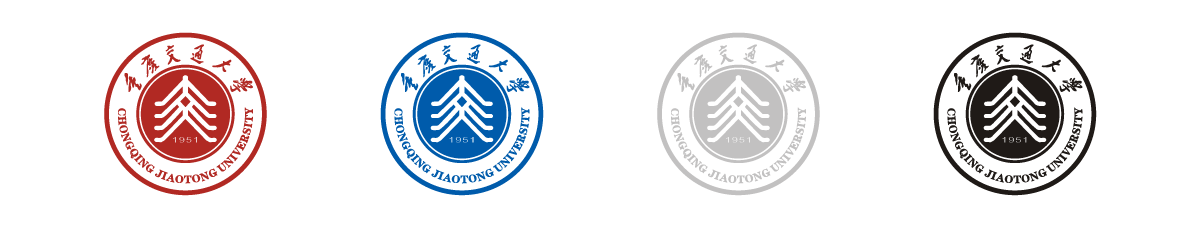 8.在圖形的外圍飾以圓形環(huán),上書“重慶交通大學(xué)”校名標(biāo)準(zhǔn)字體和英文全稱,形成眾星捧月之勢,同時與國際接軌。
